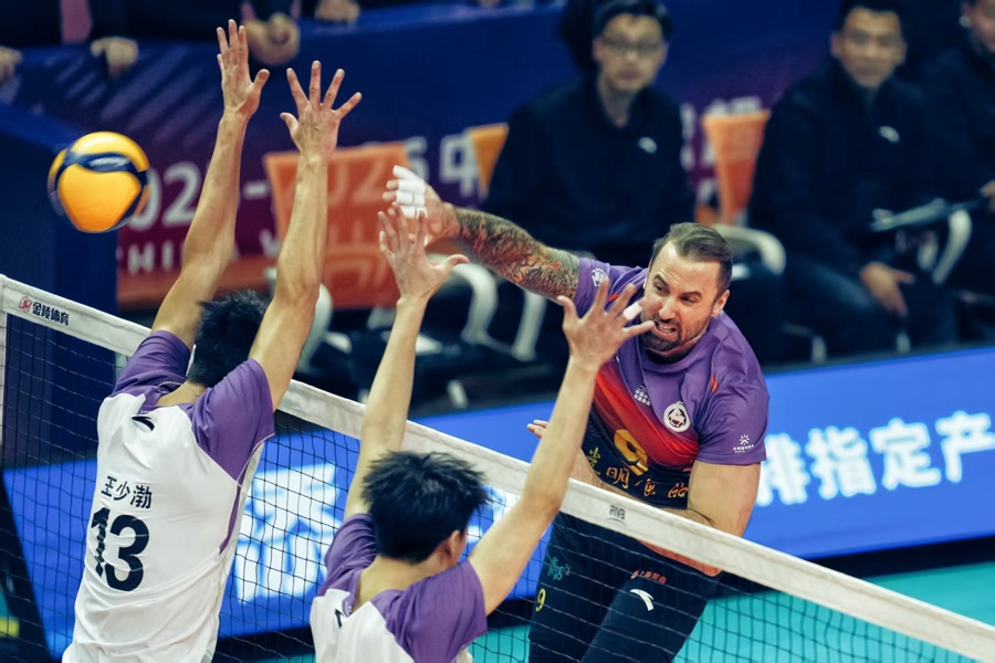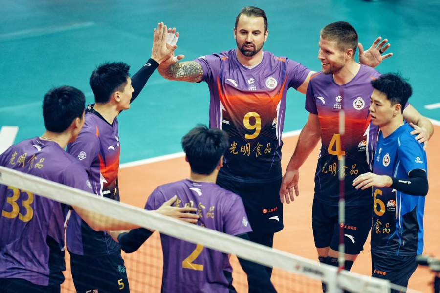 首局,上海男排凭借强力发球率先取得13比4领先。随后,上海男排加强后排进攻,胡朕卓连续后三打中,上海男排取得大幅领先,并以25比10的悬殊比分赢下首局。次局,上海男排换上小将王泊涵首发,表现可圈可点,张哲嘉、于垚在网口的优势明显,上海男排以25比14再下一城。第三局,主教练沈琼进行大范围换人,两位外援下场,包括田聪、陆天铖在内的年轻小将一一亮相,上海男排依然占据场上优势,以25比16赢下第三局。
